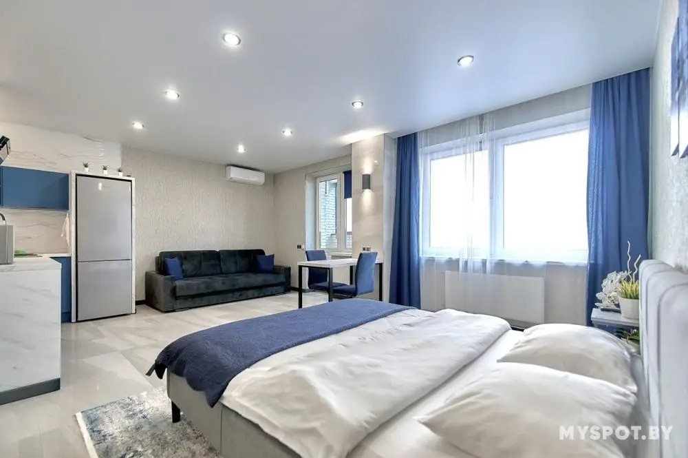 Сдается видовая большая студия на 17 этаже. Красивый вид из окна. До метро 1 мин пешком. Отличная квартира в Минске. В квартире имеется всё для комфортного проживания : SMART TV, WI-FI, холодильник, чайник, СВЧ, утюг, стиральная машина и многое другое. Цена зависит от дня недели, количества человек и спроса. Цену всегда уточняйте. Сдаем как на сутки так и на часы! Для командировочных отчетные документы.